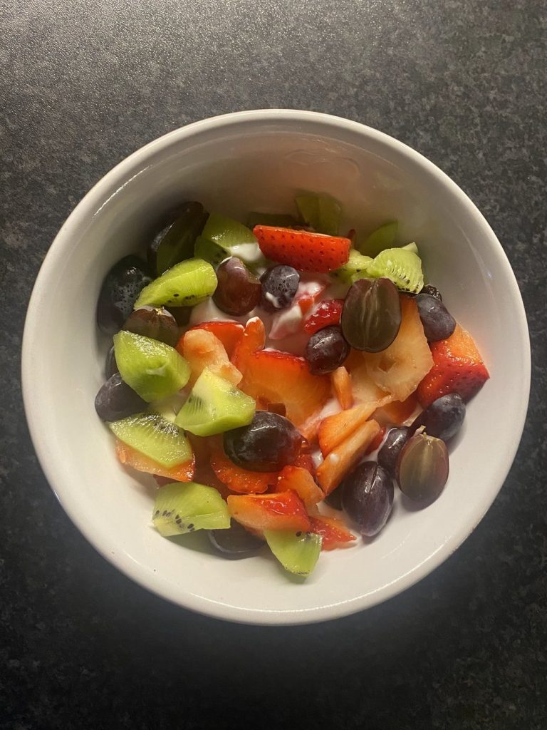 My favourite low calorie breakfast at the moment. 0% fat yoghurt (I have about 100g) and fruit. This one worked out at less than 150 calories! The protein in the yoghurt keeps me full all morning – in fact I had this and a bag of 44 calorie popcorn then ran 13.65 km before I needed to eat again!