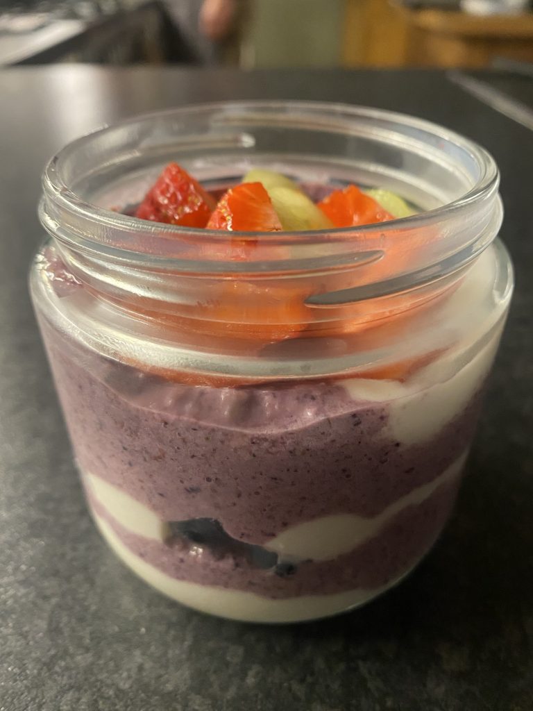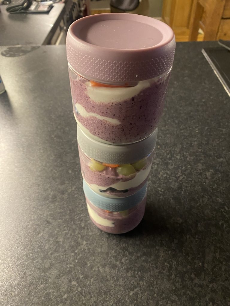 Before I add the extra fruit, the overnight oats with home made fruity kefir comes in around 10g of protein and 5g of fibre so a great start to the day!