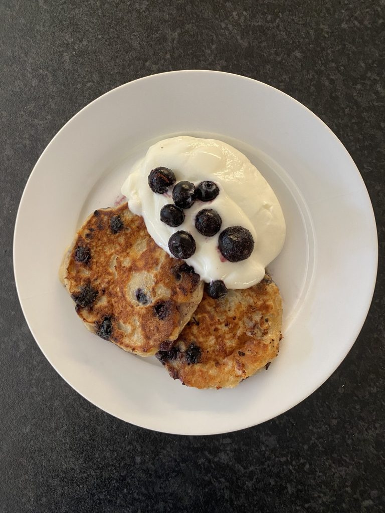 I just made these pancakes that I discovered on instagram. I added a big handful of frozen blueberries to the mix which worked really well. Full of protein and fibre so great after a run. They were delicious! Scan the QR code to see the instagram post!